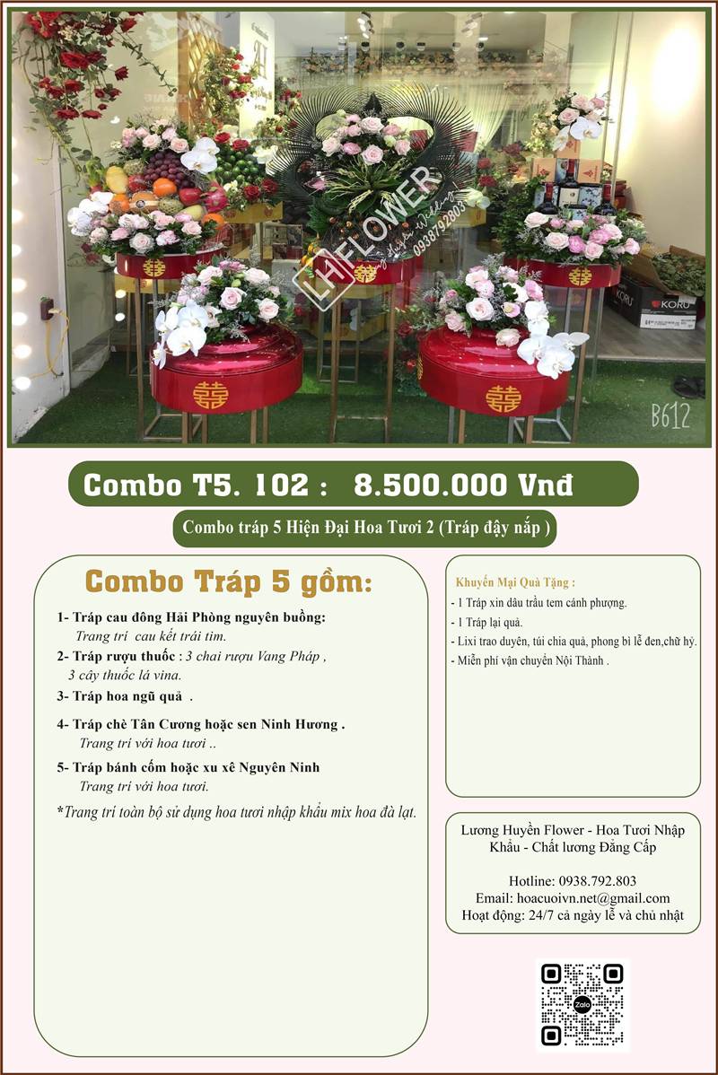 Combo 5 tráp ăn hỏi Hiện Đại kết hoa tươi 102
